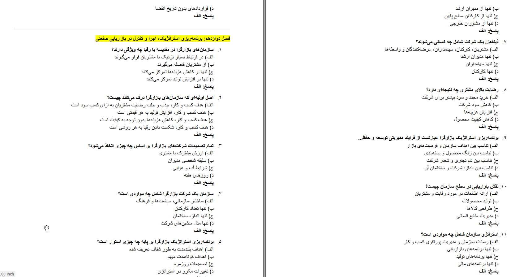 پاسخ: نمونه سوالات ارائه شده، معمولاً فراتر از یک ترم خاص است و به گونهای طراحی شدهاند که مباحث پایهای و کلیدی کتاب را که در اکثر دانشگاهها و توسط اکثر اساتید تدریس میشوند، پوشش دهند. این سوالات برای دانشجویان تمامی ترمهایی که این درس را میگذرانند، قابل استفاده و مفید است.